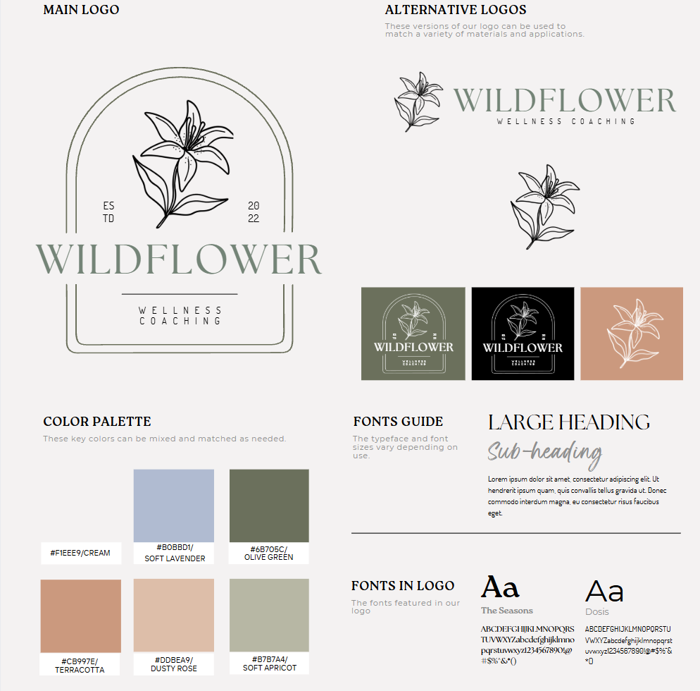 Brand Designer: Magnolia Cloyd Client: Wildflower Wellness Coaching | Krista Casper Year: 2026 | Tools: Canva Pro & Affinity